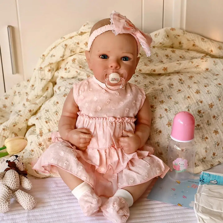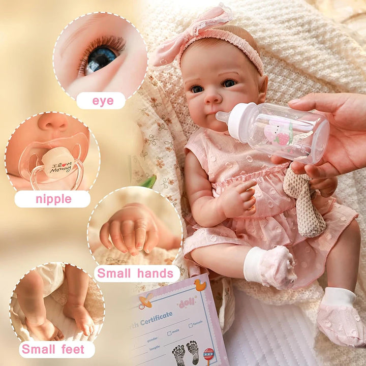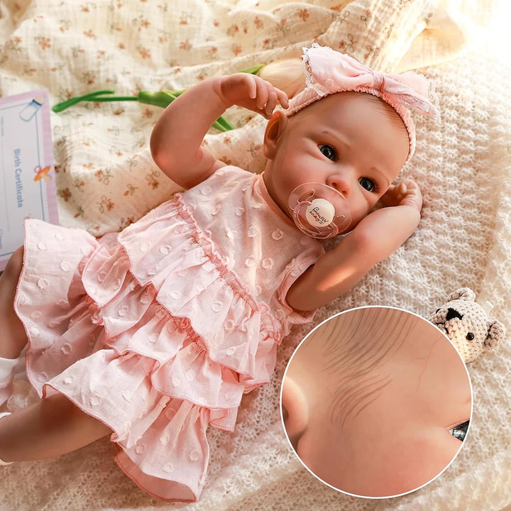18" Full-Body Silicone Reborn Baby Girl Doll with Painted Hair & Realistic Newborn Details